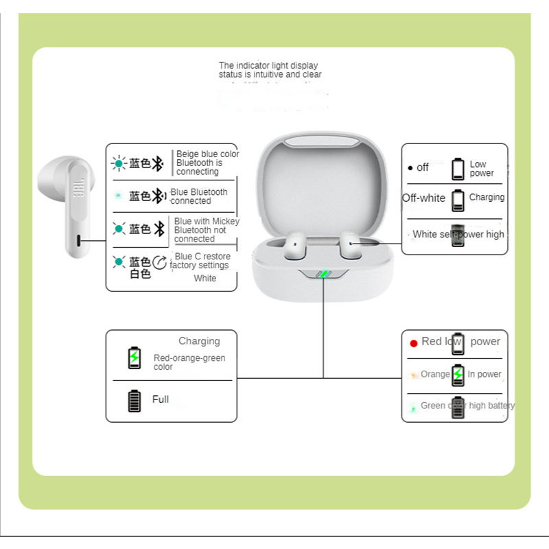 True Wireless tws 5.2 Bluetooth Earphone In-Ear Music Light weight Earbuds With Mic Charging type-c voice bass Student earphones