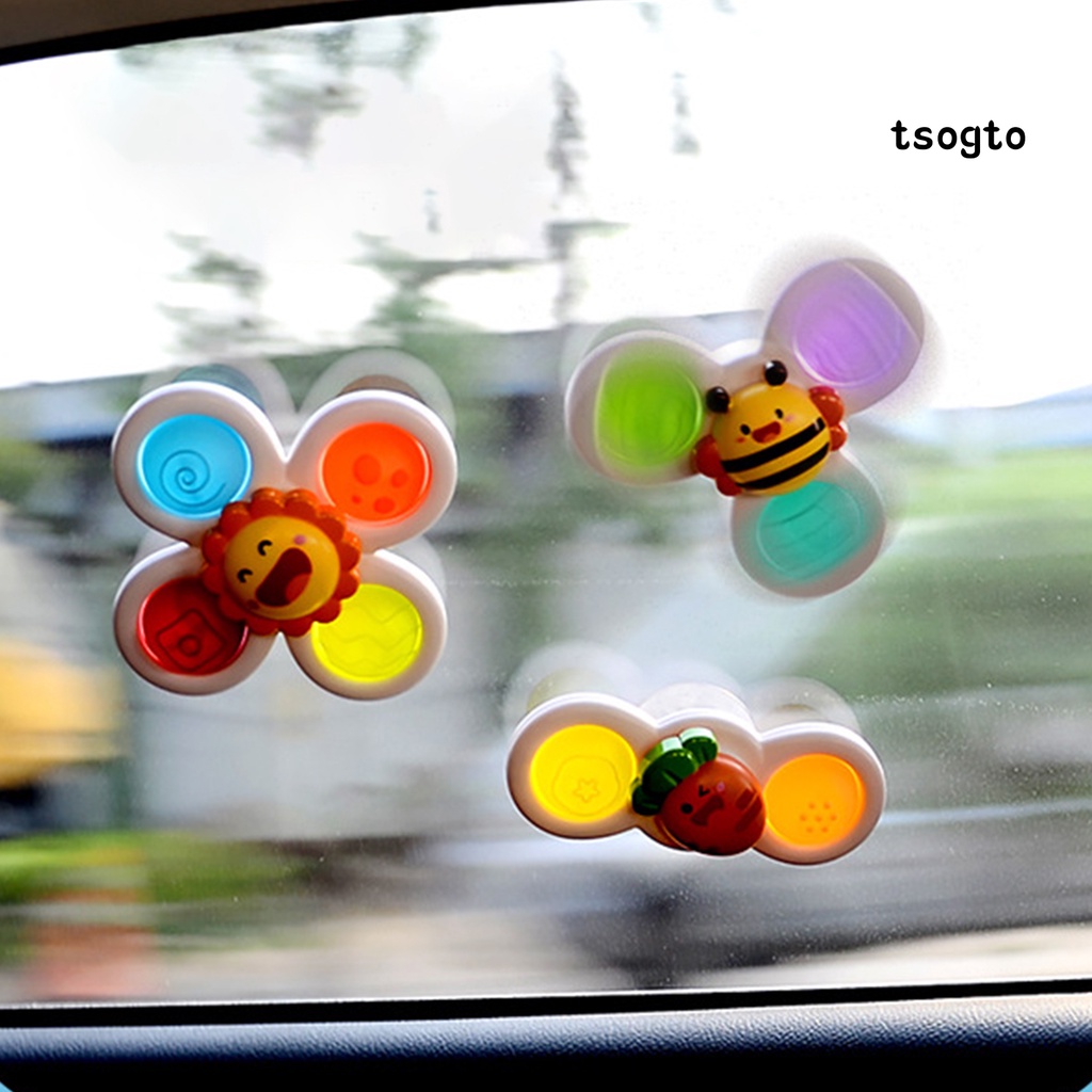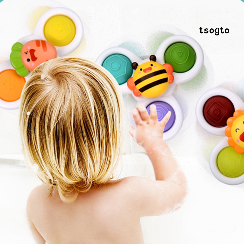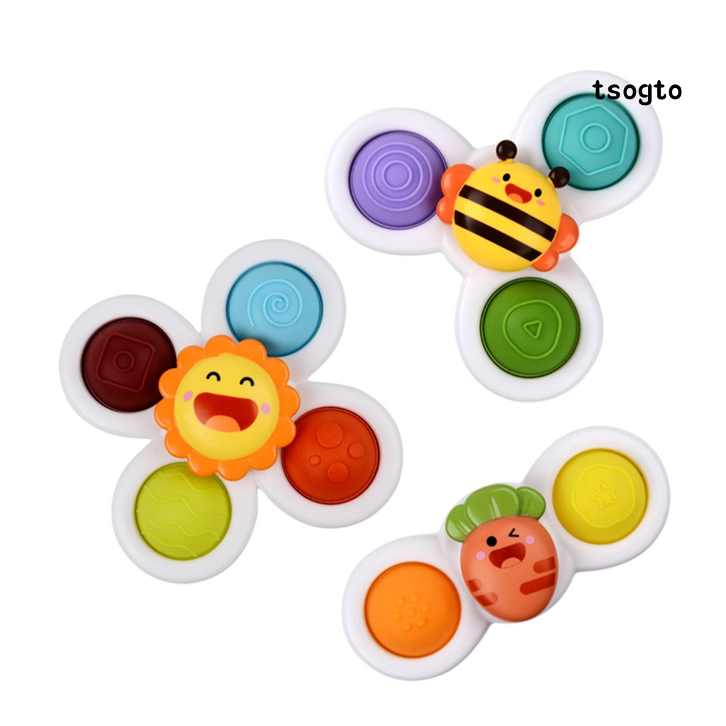 [Ts] 3Pcs Baby Educational Toys Soft Bobble Design Tactile Stimulation Safe Spin Sucker Spinning Top Toys for Baby Supplies