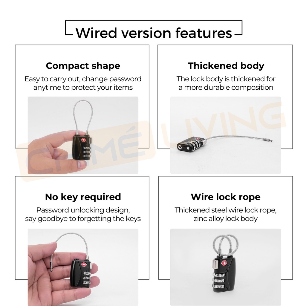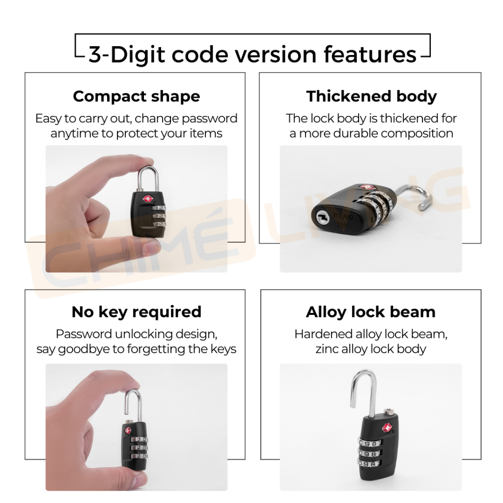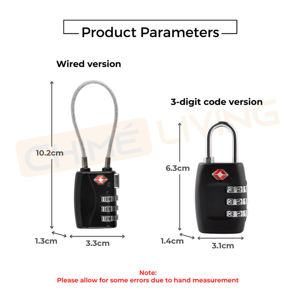 TSA Luggage Metal Lock PIN 3 Digit Combination Padlock For Travel | Anti Theft Customs Suitcase Bag Secure Cable Lock