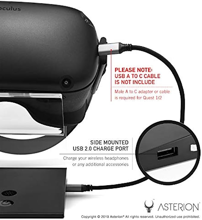 Convenient USB A charge port - (Please note: This is a universal stand, specific VR device charging cables are NOT included) Quickly mount and start to charge your headset in seconds