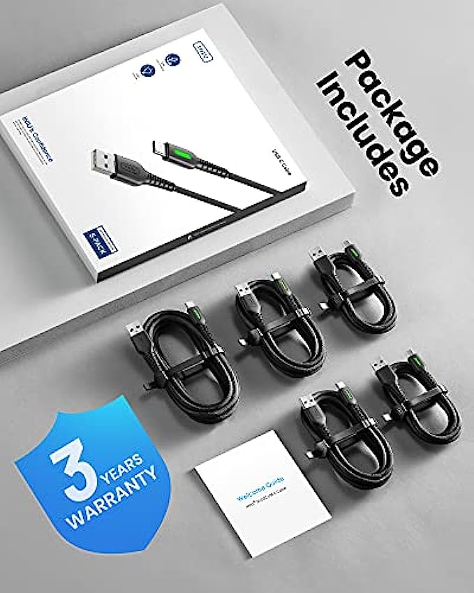 • ✅【One package, 5 Fast Charging Cables】 The real one-stop cable solution, with two 3.3fts, two 6fts and one 10ft, you’ll wonder why you bother to buy any extra cables. Share them with your family or friends or simply put them anywhere you want to stay powered. They’ve got your needs all covered.