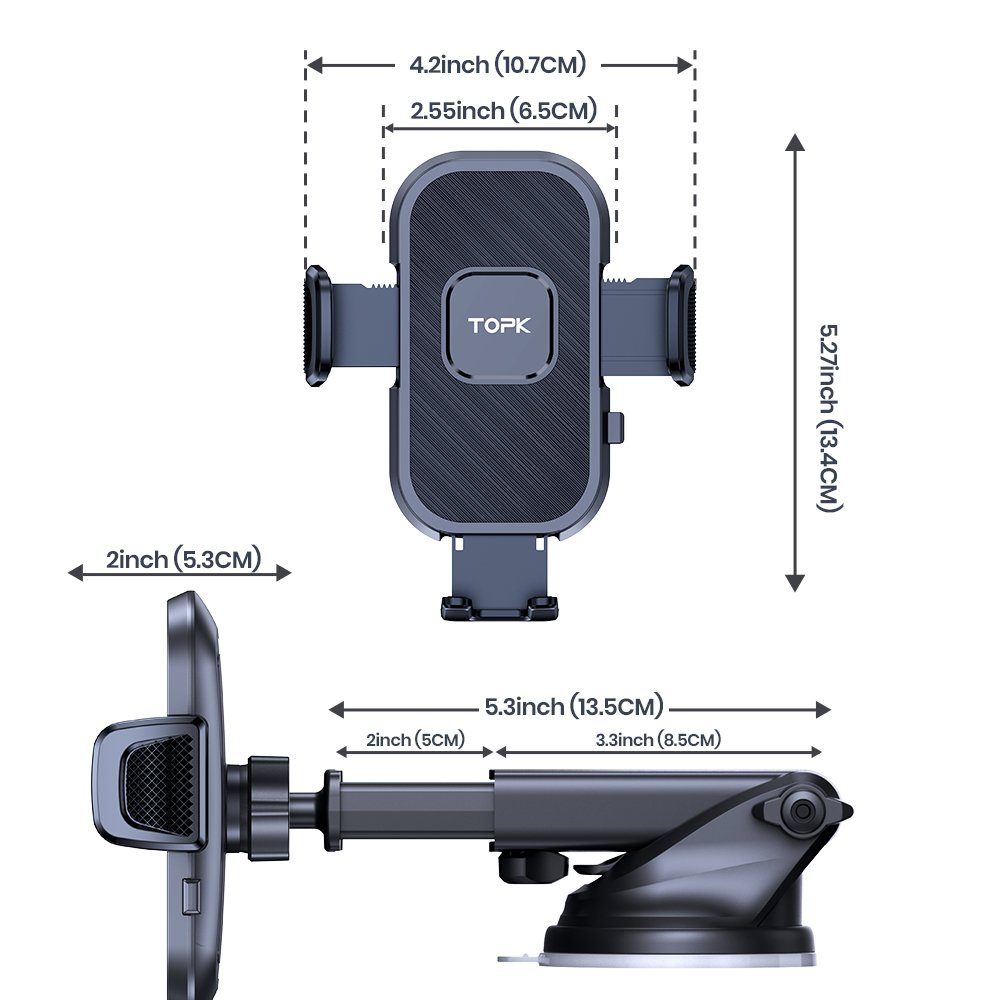 [Value Choice] TOPK Car Phone Holder [2023 Upgraded] Strong Sticky Adjustable 360° Rotation Phone Holder for Cars Dashboard/Windscreen/Air Vent