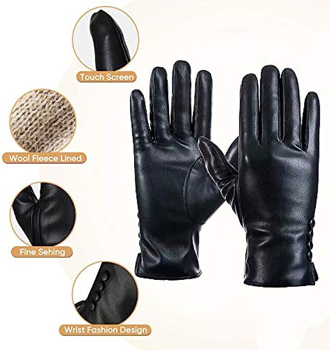 • Upgraded Material: Outer made of upgraded top faux PU leather with softness of touch, suppleness, strength and lasting comfort, feel just like genuine leather. Full lined with Italian wool, let the gloves be your chic cold weather essentials.