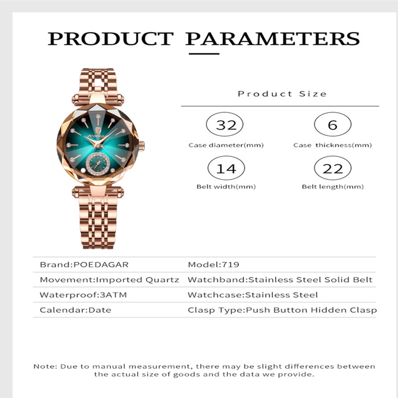 Poshi Waterproof Fashion Korean Quartz Women's Watch Square Dial Genuine Silicone Strap Elegant Watch