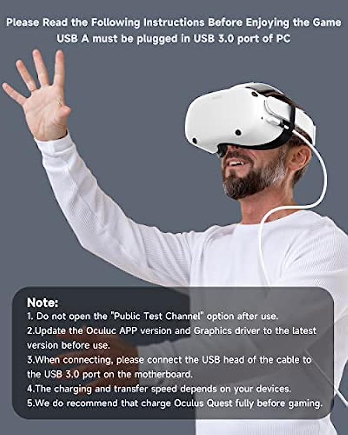 ➤Design for Oculus Quest 2 : ZOOAUX link cable Compatible with Meta/Oculus Quest 2 Accessories, it can perfectly connects the Quest / Quest 2 to the gaming PC, so that you can play all Oculus Rift apps and Steam VR games, while simultaneously powering the headset. You can enjoy the vast and growing selection of PC VR games.