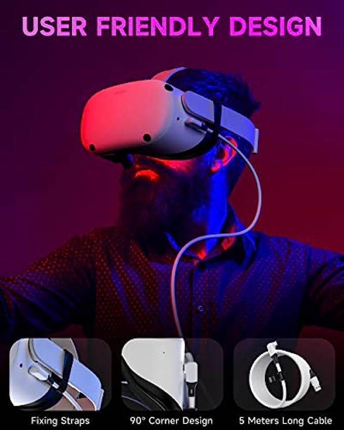 ➤ Flexible and Comfortable : This 16ft quest 2 link cable gives you enough freedom of movement without being restricted while immersed in the VR world. The 90-degree USB C port conforms to the design of the quest 2 headset, makes you more stable and not easily damaged when playing. The attached Velcro strap fixes the cable and Quest to prevent disconnection during movement.